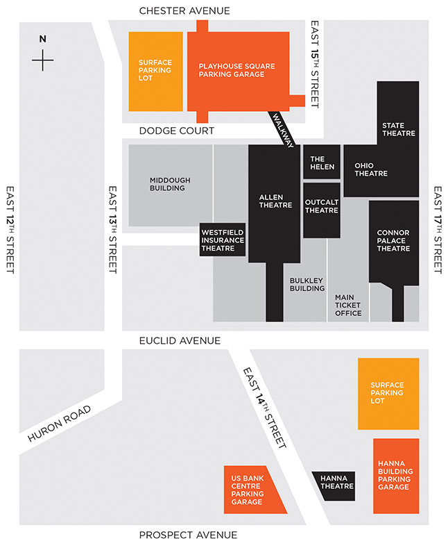 Parking may be available for a fee in the Playhouse Square garage located at 1450 Chester Avenue. The second floor of the garage has a covered walkway leading directly into the Allen Theatre Complex. To purchase, visit playhousesqure.org.