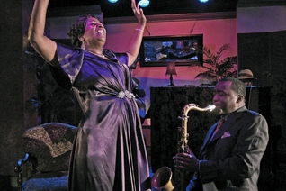 Miche Braden as Bessie Smith in Cleveland Play House production of The Devil's Music: The Life and Blues of Bessie Smith at the Allen Theatre, February 15 - March 10, 2013. Photo credit: John Quilty