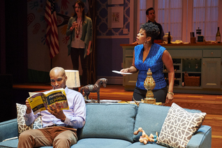 Foreground, left to right: Bjorn DuPaty (Daniel Stubbs) and Marinda Anderson (Vanessa Stubbs). Background, left to right: Leenya Rideout (Molly Flemmingsen) and Brian Sills (Scott Flemmingsen). Photo credit: Roger Mastroianni